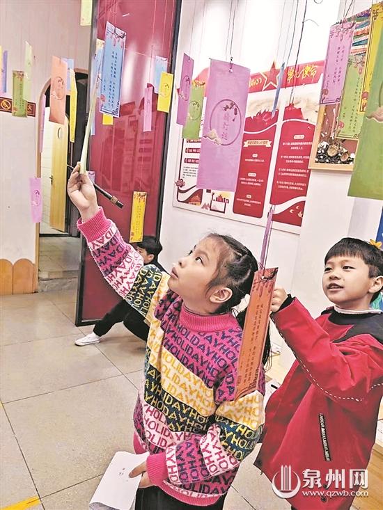 学生们正在参与猜灯谜活动(鲤城区第三中心小学 供图)