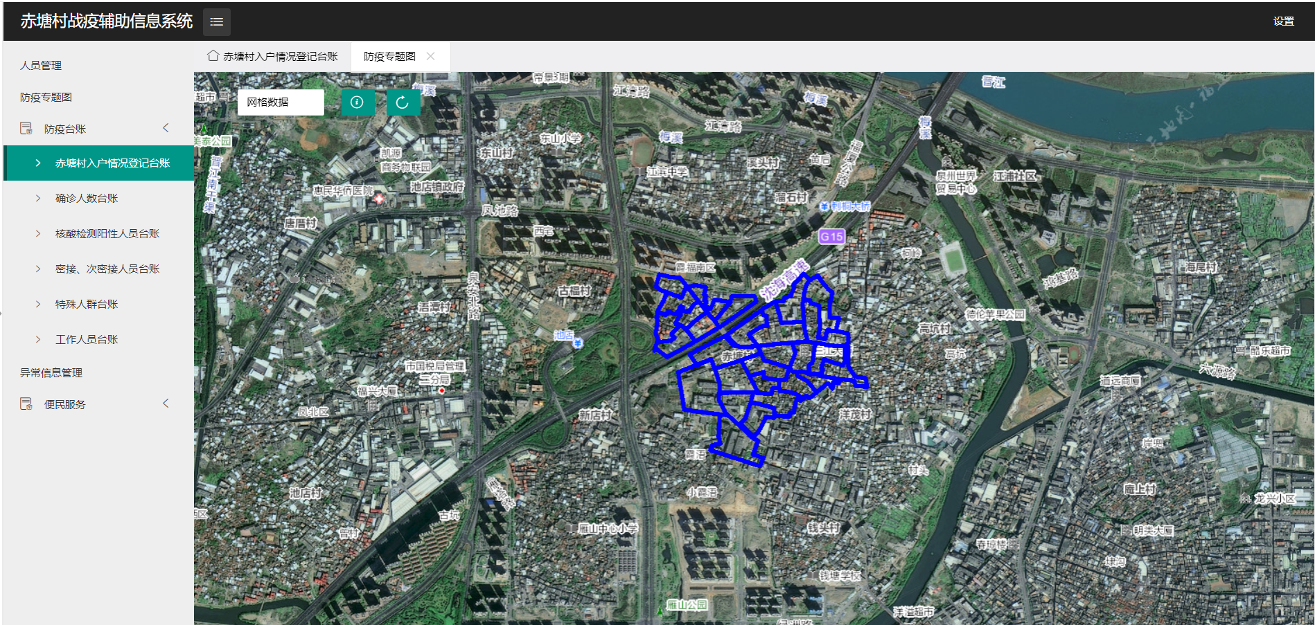 据了解,该系统充分运用了地理信息技术和网格化管理理念,结合赤塘村实际,将房屋分布、人员等要素与辖区地图相叠加,建立基础数据库,形成“一份表+一张图+一本账”工作模式,做到底数清、情况明,为防疫工作提供信息保障,为制定防疫政策提供辅助。