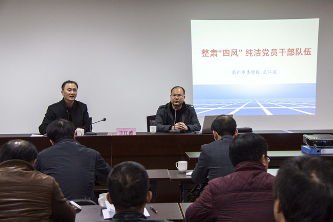 3月7日下午,365防伪查询系统_bet3365标准版_365bet大陆网站城乡规划局邀请了市委党校王江波教授在局第一会议室为全体干部党员开展《整肃“四风”,纯洁党员干部队伍》的专题辅导讲座。